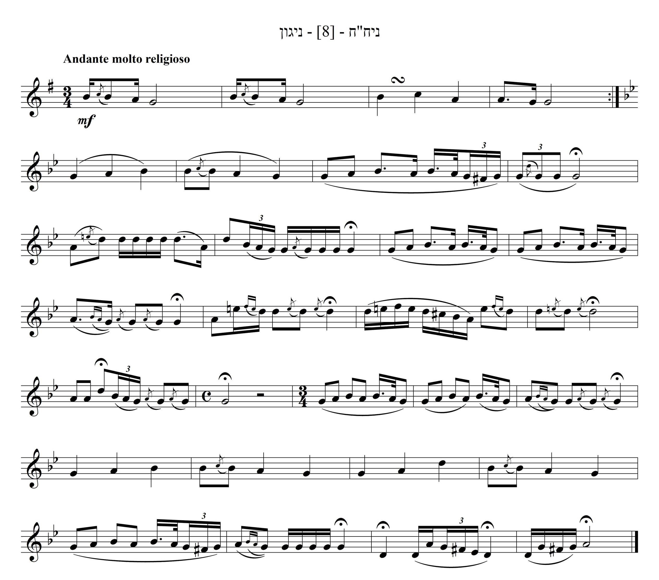 מצ"ב ביצועי הניגון על ידי מרדכי בראצקי ודוד הורווית ומתוך אתר היכל נגינה