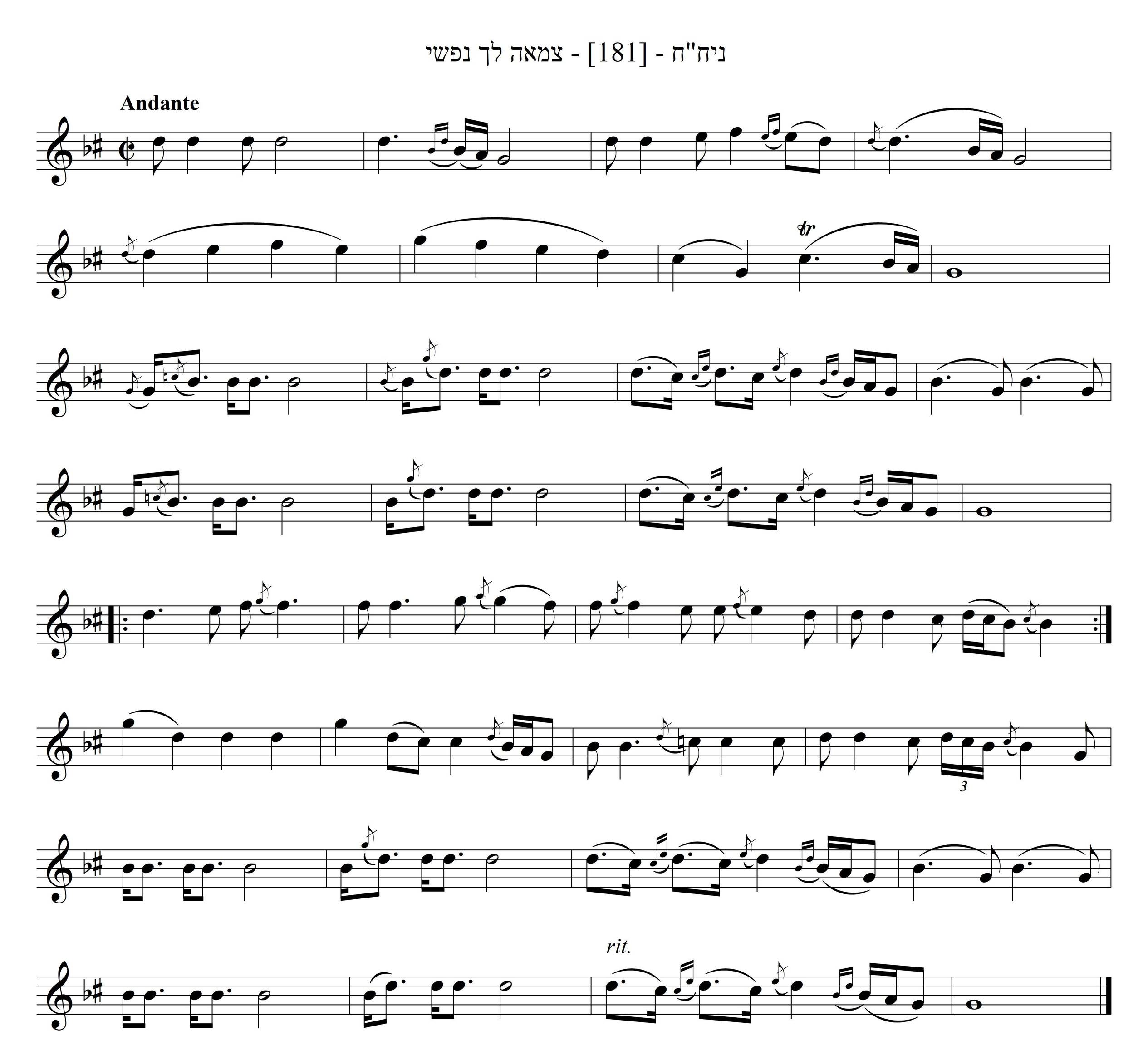 באסופה נכתב: מיוחס לכ"ק אדמו"ר הזקן, אבל אינו ברור אם הוא מהעשרה ניגונים הידועים שחיבר בעצמו. המנגינה המתאימה להתיבות מלאה געגועים וכיסופי הנשמה. כ"ק אדמו"ר שליט"א מליובאוויטש מחבב מאד את הניגון הזה ומצוה לפעמים תכופות לשוררו בעת התועדויותיו ביומא דפגרא, ומזמרים אותו בהתרכזות המחשבה והתעוררות הלב. נרשם מפי קבוצת המנגנים שלמדו את הניגון מכ"ק אדמו"ר שליט"א ששרו בעת התועדות ש"ק מברכים אייר תשי"ד