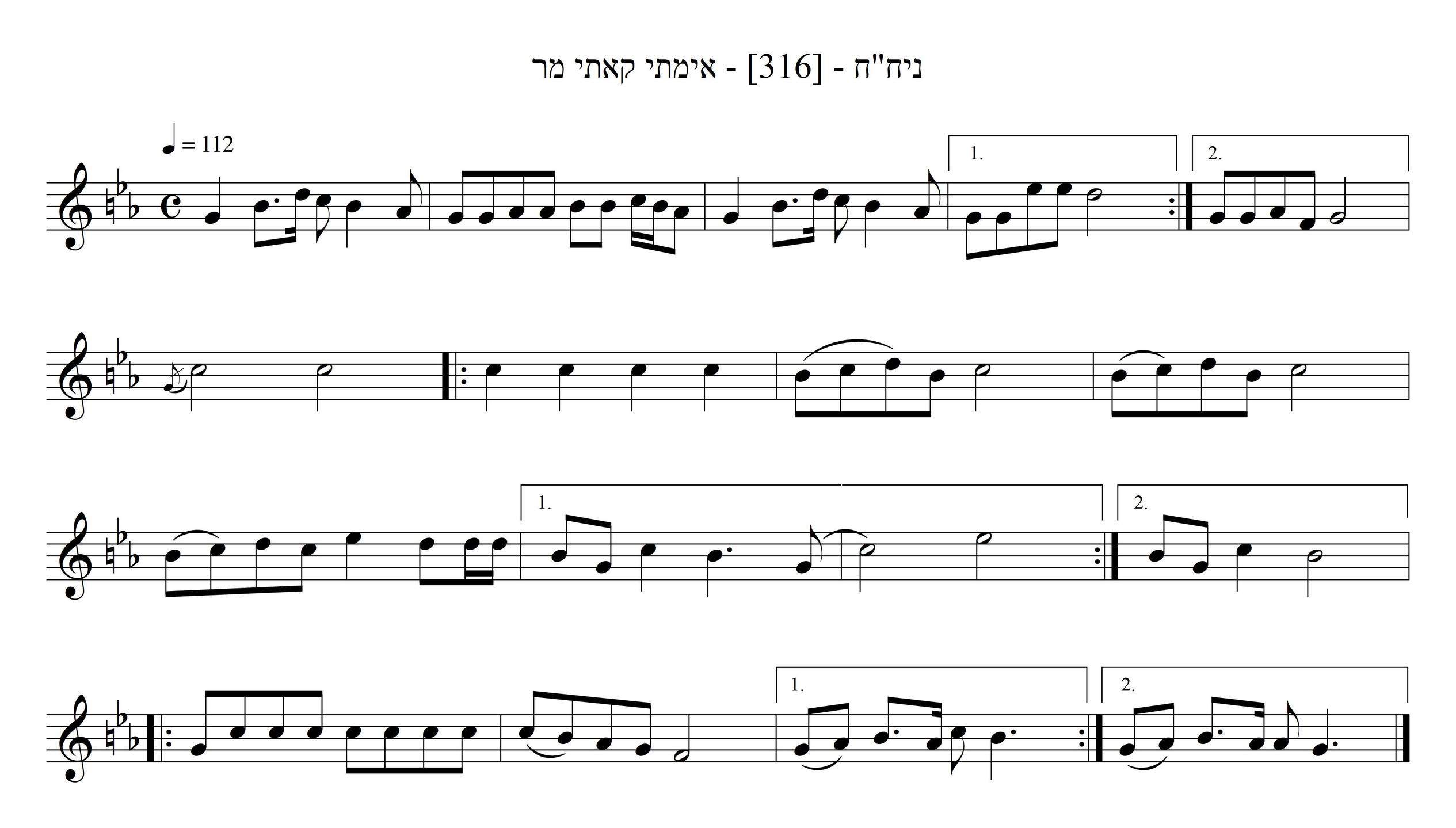 באסופה נכתב: מנגינה ידועה שהותאמה ומושרת עם המלים אימתי קאתי מר לכשיפוצו מעינותיך חוצה, (שאלת הבעש"ט ז"ל למלך המשיח ותשובת מלך המשיח להבעש"ט ז"ל בעת עליית נשמת הבעש"ט בהיכל המשיח בשנת תק"ז - כמובא במכתבו הידוע לגיסו נדפס בסו"ס בן פורת יוסף). ניגון זה מושר תכופות בעת ההתועדויות ובזמני מחה. ניגון זה הופיע בתקליט ניחח מס' 2, צד א' ניגון 3, ומשם נרשמו התוים לניגון הזה כאן