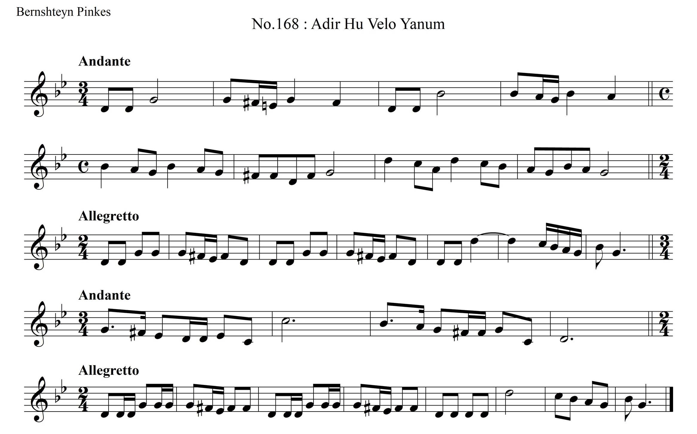 Copied into Ch. Vinaver and E. Schleifer's Anthology of Hassidic Music (1985), No. 57