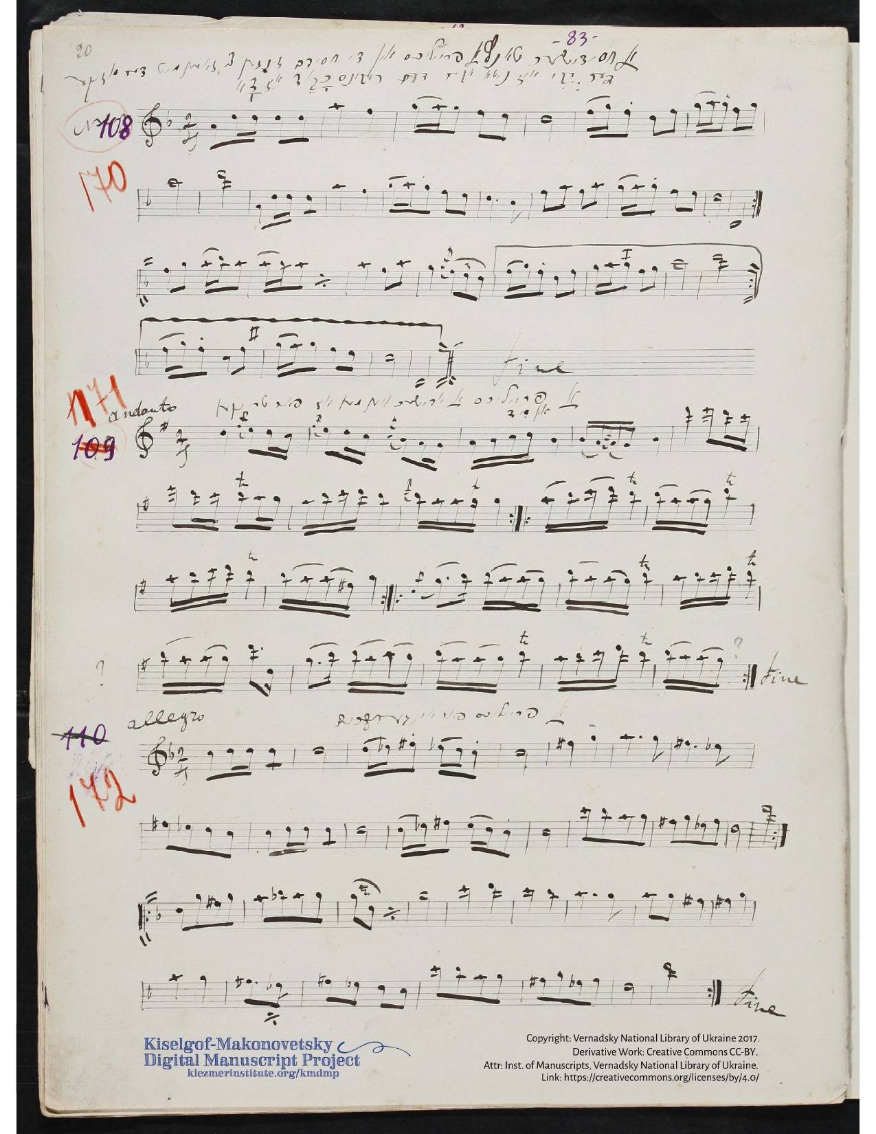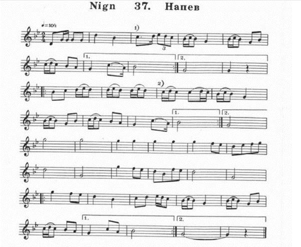 121 | 400 | 958 | 2365Appears in Beregovski's Klezmer volume (1987) as "Nign" no. 37; see below. The editor's note: notated by A.Y. Makanovetski. A different version is available on the website of the Klezmer Institute; see the second scan below, the first tune. The Yiddish inscription above: A Hasidic dance "a freylekhs", Hasidim sing this tune to the words: The Rebbe is not here, but His honor is here