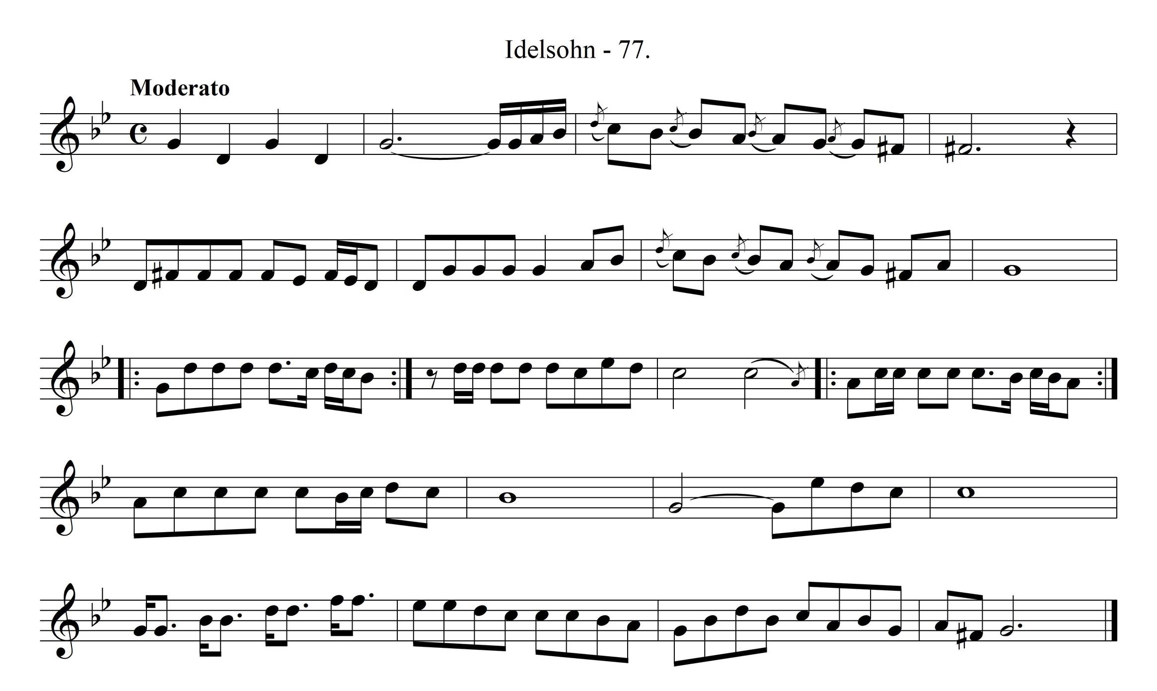 Idelsohn, A.Z., 'Thesaurus of Hebrew Oriental melodies', X, 'Songs of the Chassidim,' Berlin, 1932