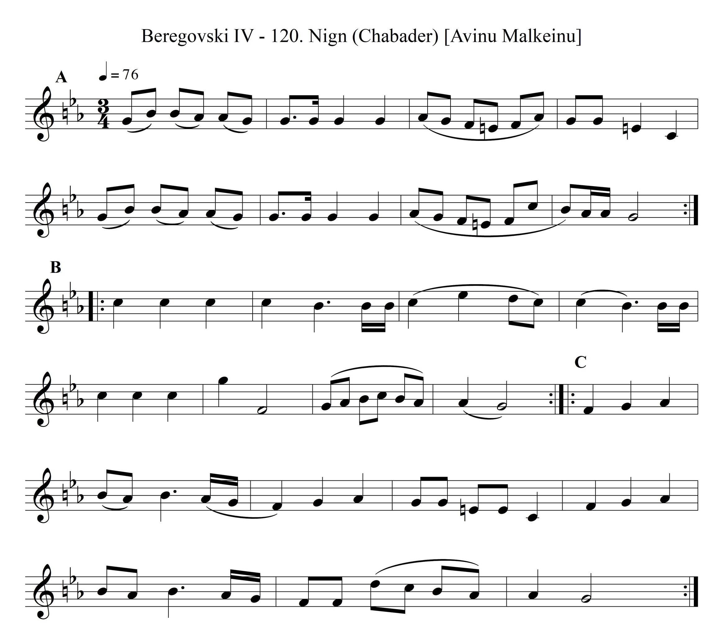 Notated from M. Yanovski in Kherson in 1938 (תרצ"ח), Kiev number B-952. Yanovski remembered this nign since his childhood, i.e. since the early 1880