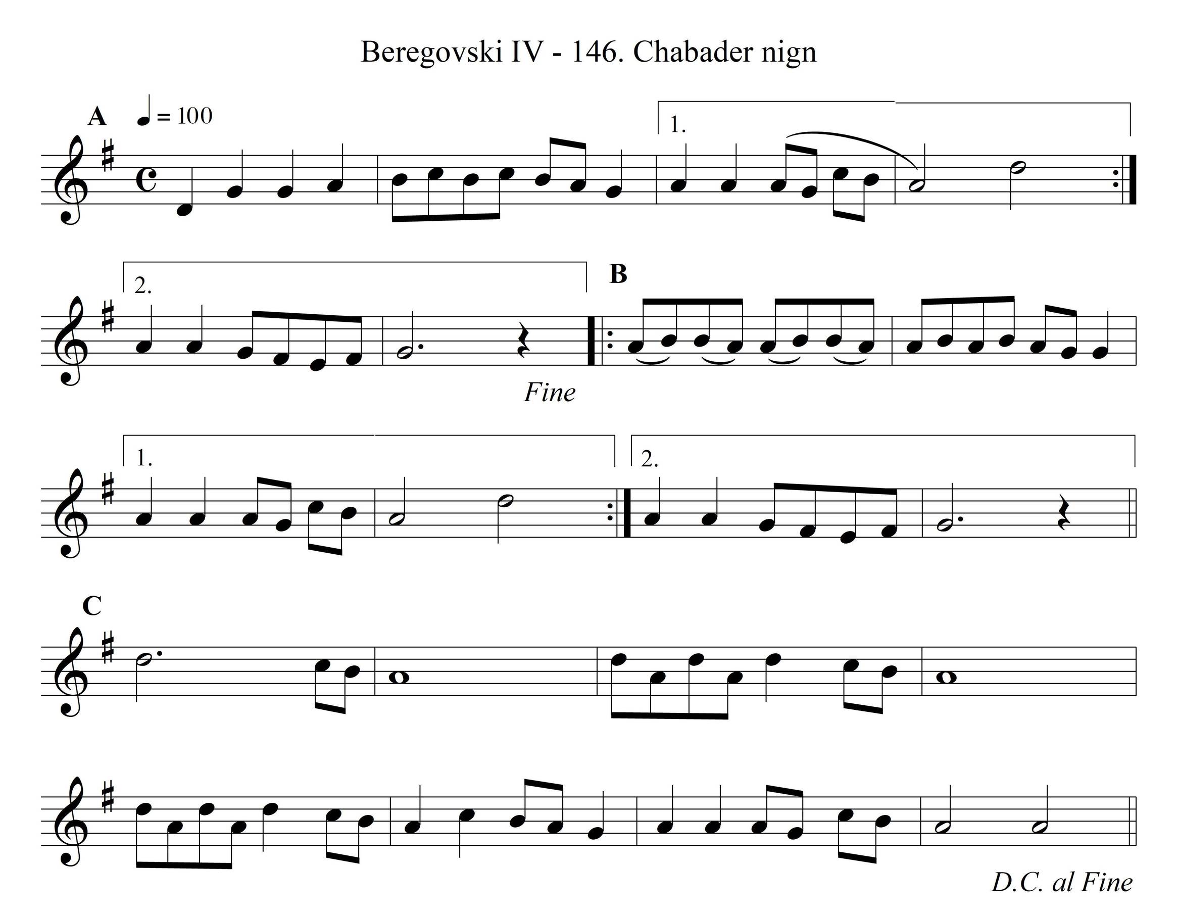 Notated from Vaysman (who learned this nign in the shtetl Podobranki) in 1933 (תרצ"ג), Kiev number B-870. Varians: Kiev number 327, recorded from Melamed in the shtetl Derazhne in 1913 (תרע"ג); Kiev number K-920, notated from Koyler in 1913 (תרע"ג)