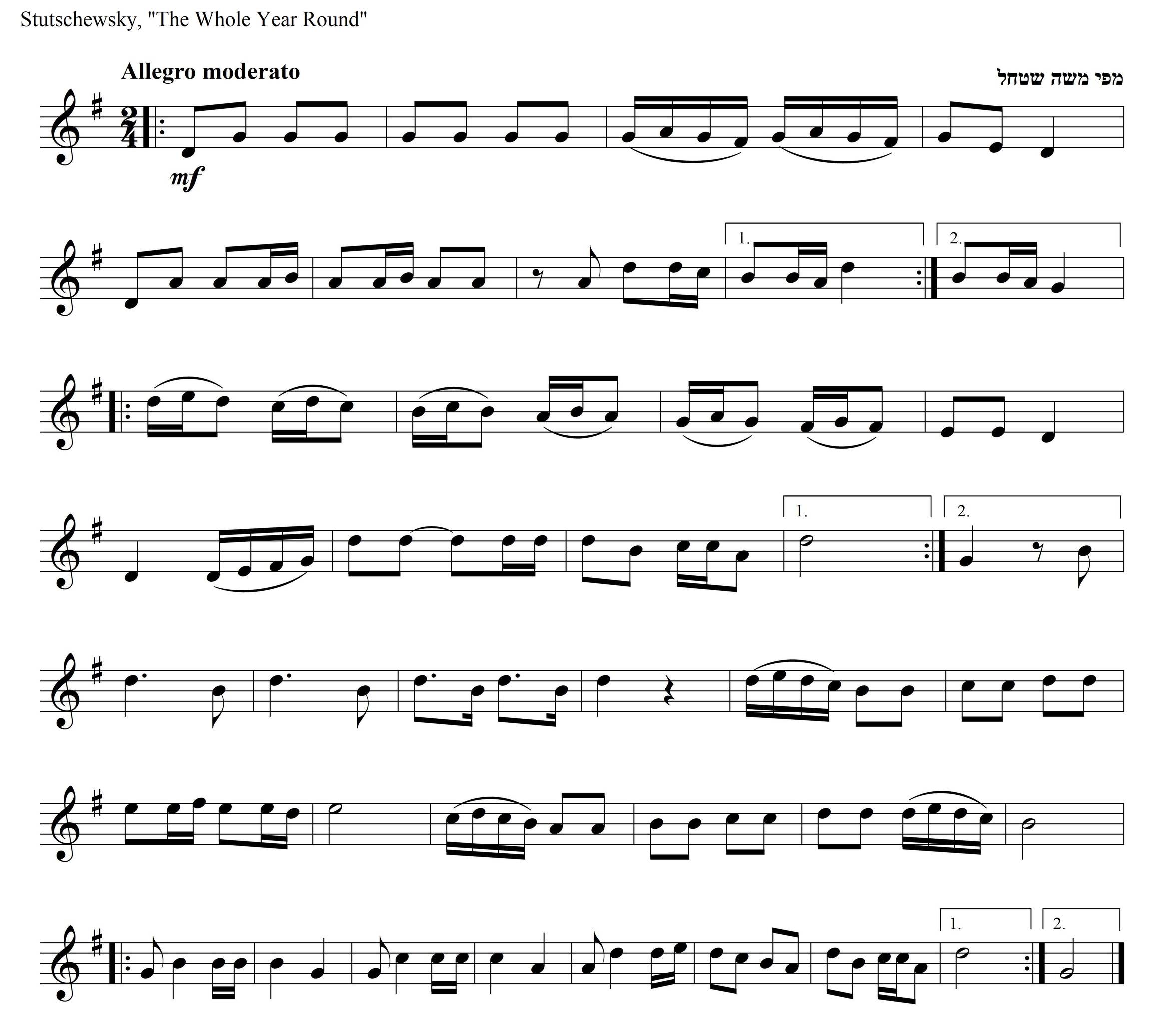 Stutschewsky, J., Hassidic tunes : Nigunim for the whole year round. Tel Aviv, 1973