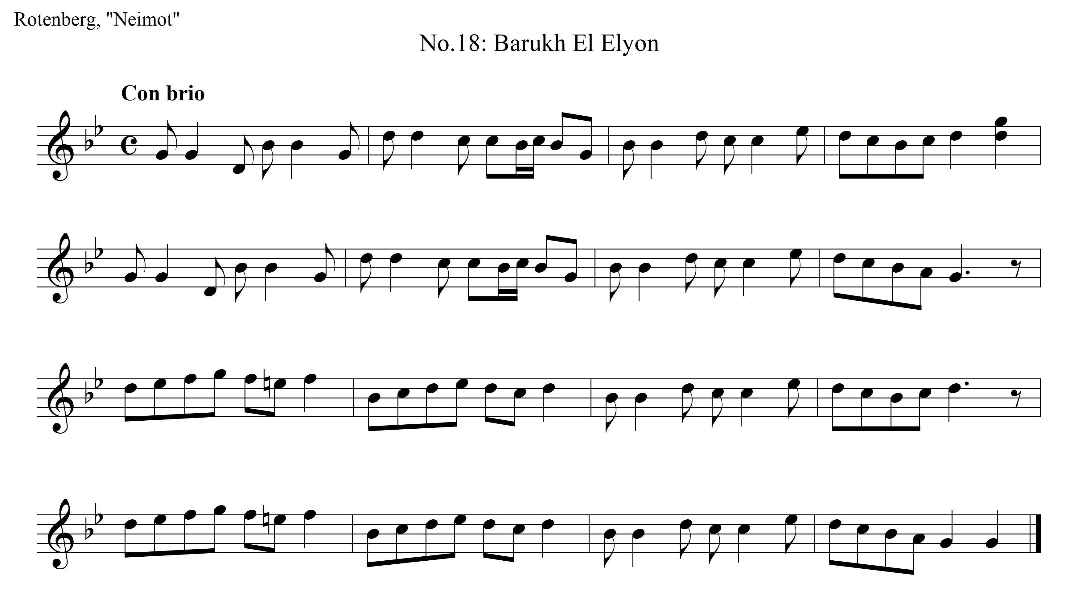 A shorten version of this nign appears as nign no. 18, "Barukh Kal Elion", on page 22 of the same collection by Rotenberg, see image file