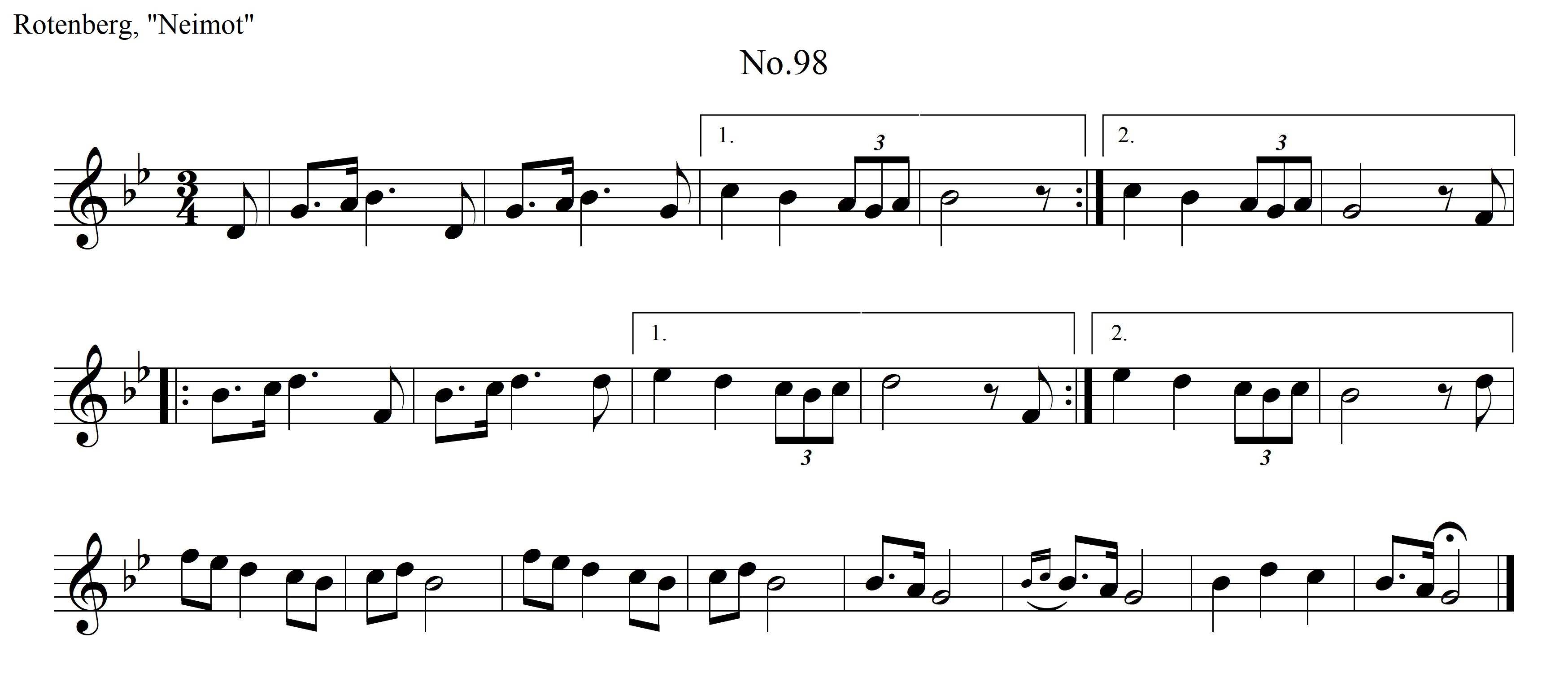 גרסה מקוצרת של הניגון הופיעה כניגון מס' 98 בעמוד 86 של אותה אסופת ראטענבערג, ראו קובץ תמונה