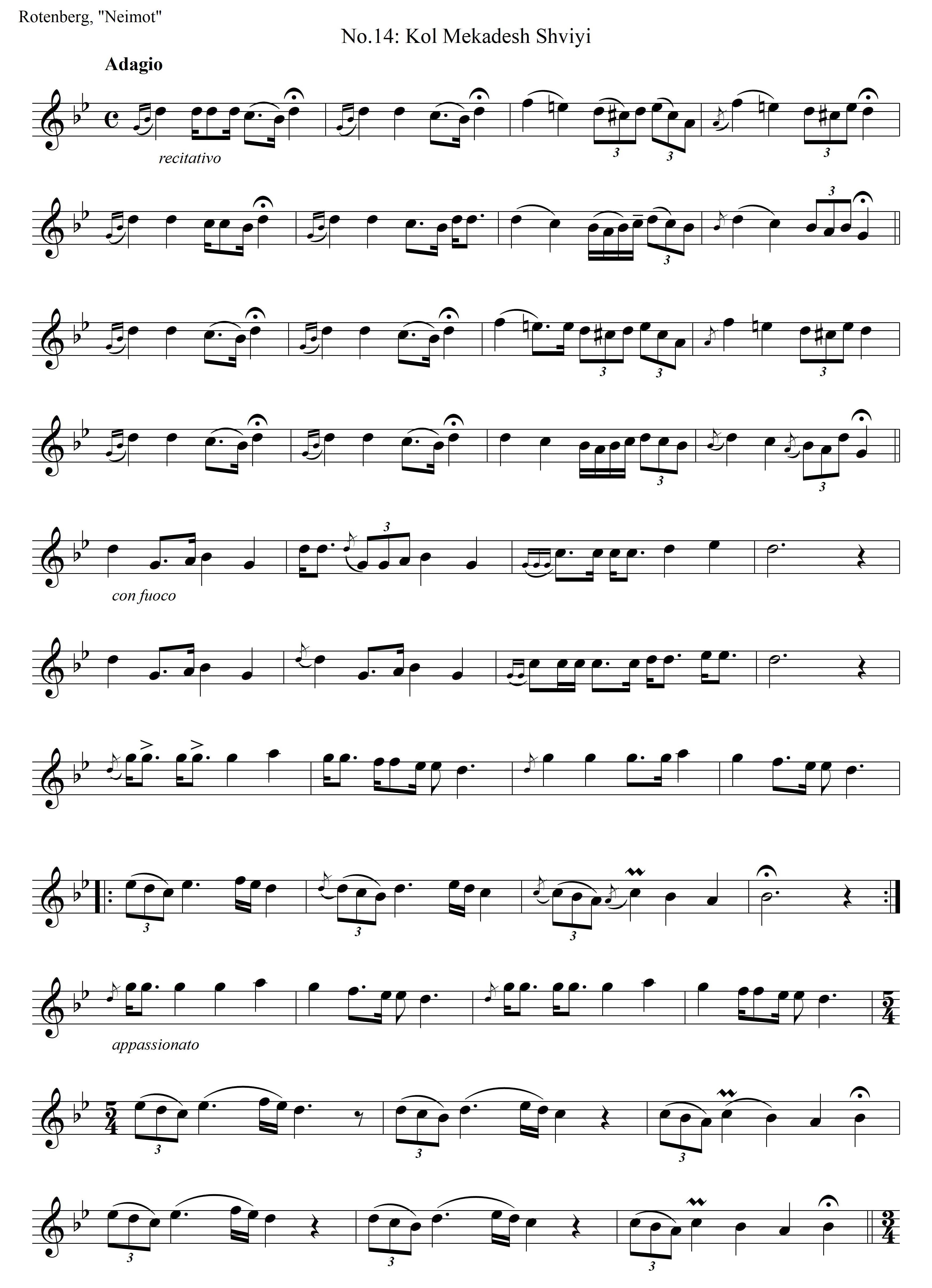Also published in Rotenberg's collection "Songs and Tunes for Sabbath and Holidays" (1971) (pages 18-19, #14), titled Kol Mekadesh Shviyi. For this version see image files below